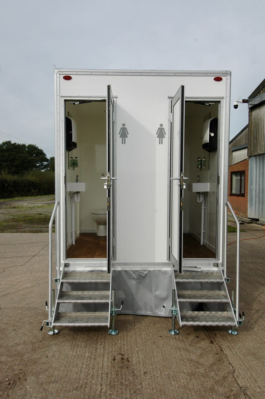 This 4 unit Luxury Trailer Toilet has the advantage of extra large 4 separate cubicles / one hand basin and full length mirror in each cubicle.