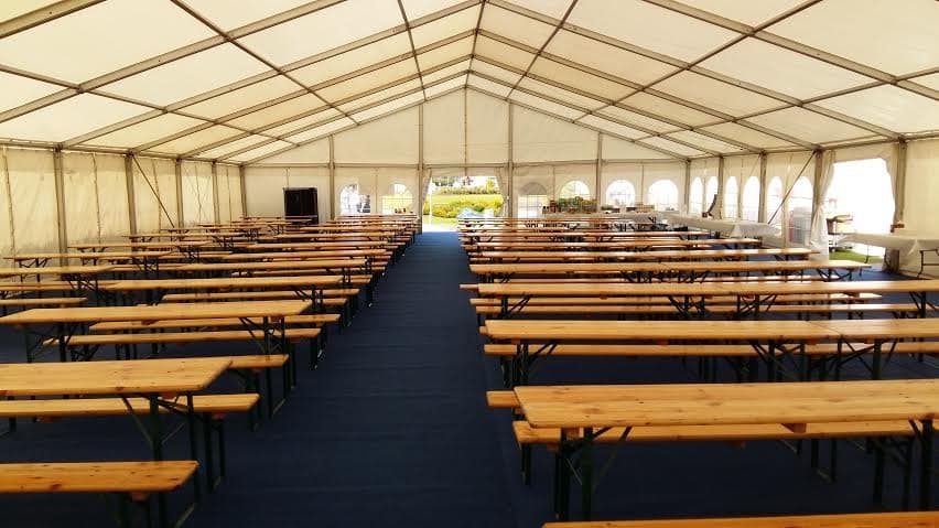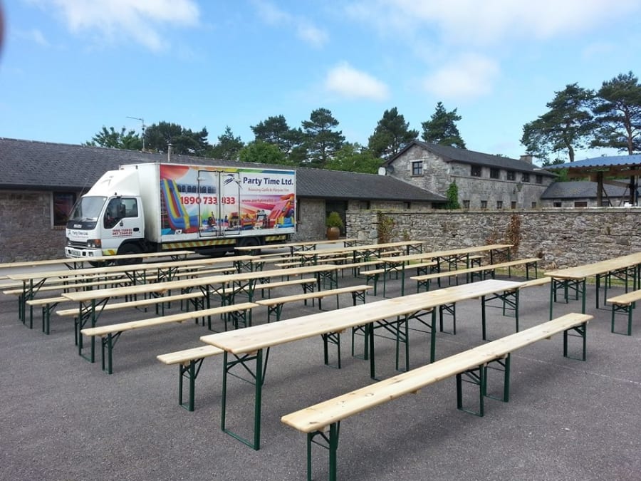Perfect for long summer days with the family, outdoor concerts or other Family fun days our large stock of picnic benches for hire is second to none. Picnic tables to hire are growing in popularity all the time, so why not hire picnic tables here! Our wooden picnic tables for hire have folding legs and can be set up by one person and are much less cumbersome than the traditional picnic table.