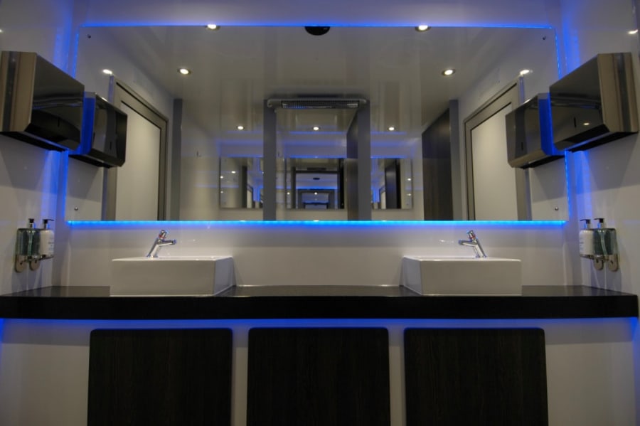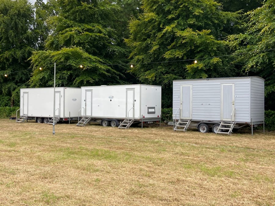 Our VIP luxury toilets have 3 toilets in the ladies area with hot water, soap and luxury hand towels. For the gents there are three urinals and a separate toilet area. Hand basins with hot water, soap and luxury hand towels are also available. With fresh flushing porcelain toilets, porcelain sinks, luxury hand soap and luxury hand towels, you will impress your guests and offer them a home from home toilet facility.
