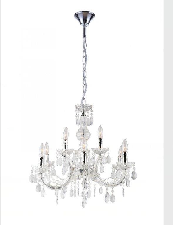 These beautiful Chandeliesr offers a traditional style in a modern finish featuring Acrylic Centre, Arms and Dressings giving a glamorous feel to any Marquee. This light fitting can also be put on a dimmer switch.